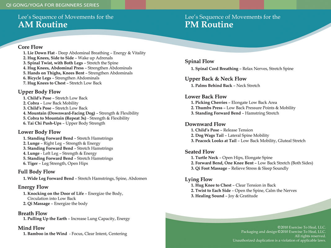 - A handy pocket routine guide that lists the movements and benefits of each routine -- perfect for traveling