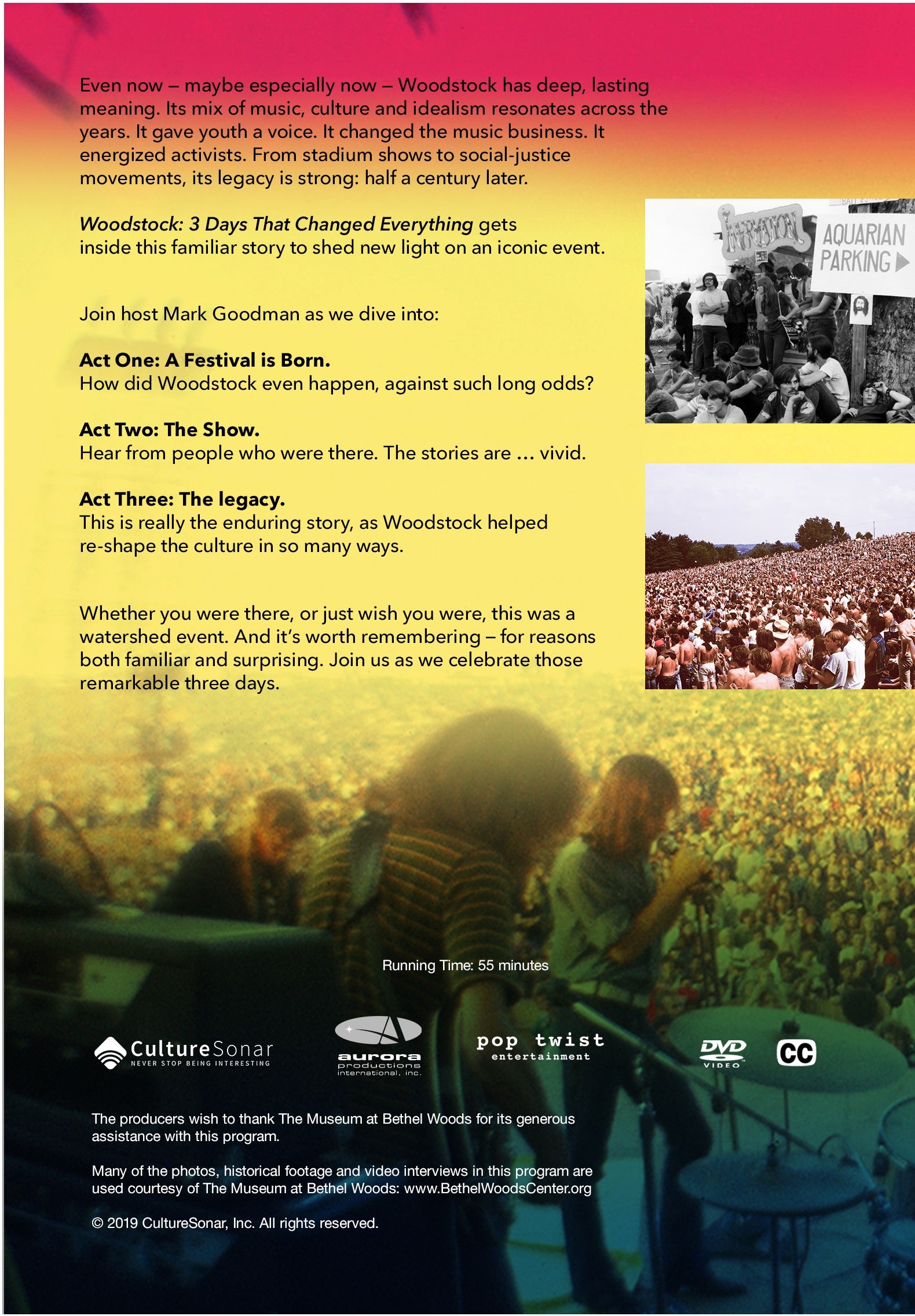 The producers wish to thank The Museum at Bethel Woods for its generous assistance with this program.